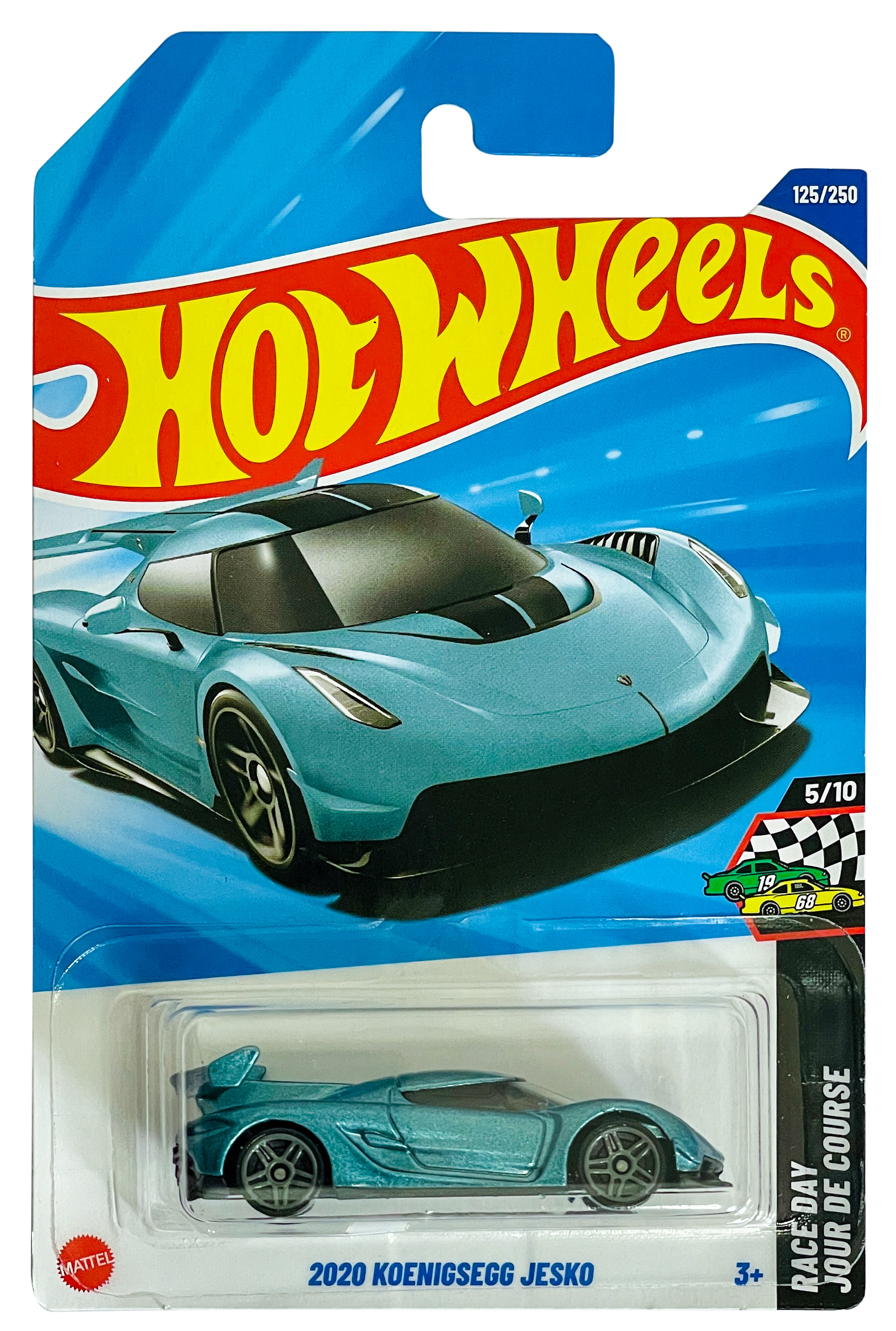 The 2020 Hot Wheels Koenigsegg Jesko is a 1:64 scale die-cast model of the Swedish hyper-car, featuring a 5.0L twin-turbo V8 design, high-downforce rear spoiler, and intricate detailing. Released in various colors across series like HW Exotics and Race Day, it is a popular, highly detailed, and, accurate, affordable collector's item